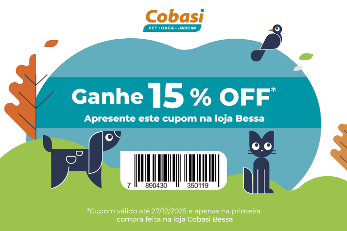 A unidade conta ainda com clínica veterinária e banho e tosa, para garantir o cuidado completo com o seu pet. E, claro, a Cobasi Bessa é pet friendly, perfeita para passeios e compras com seu melhor amigo!