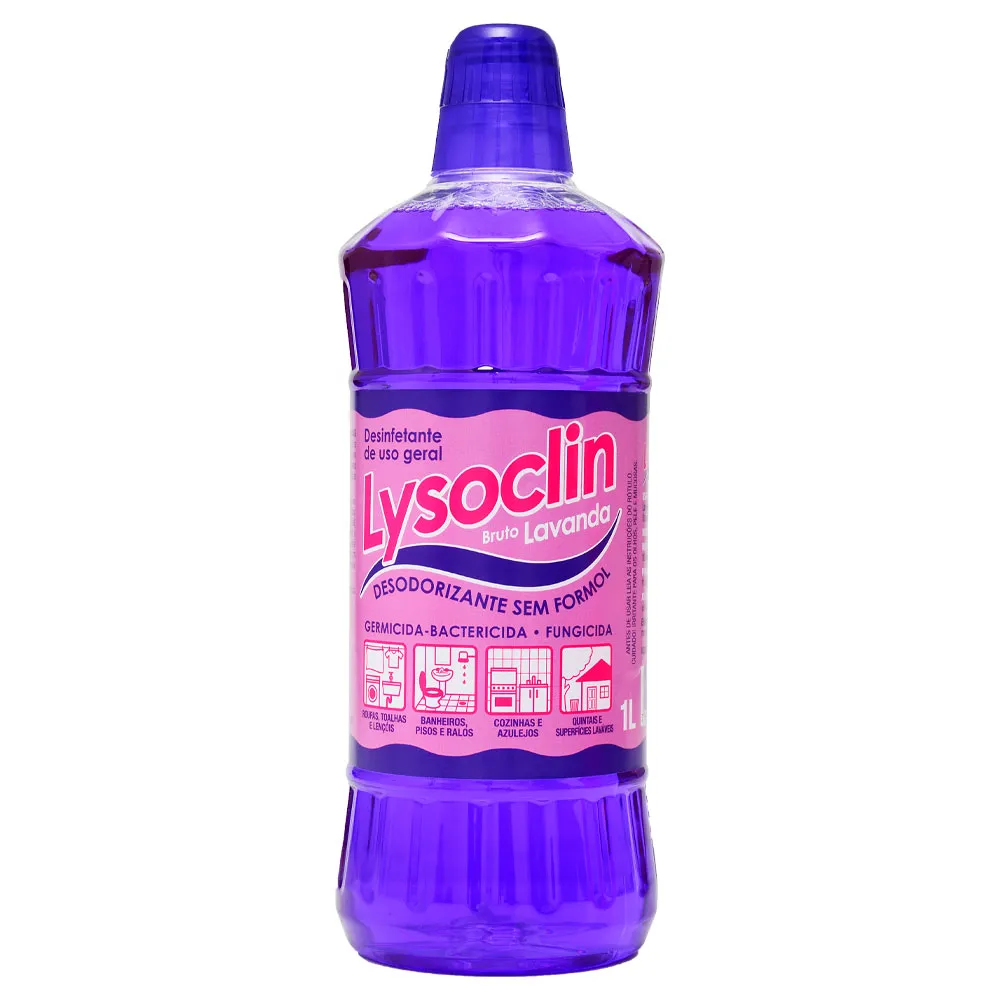 | Desinfetante Lysoclin Lavanda | Desinfetante germicida, bactericida e fungicida. | Pisos, superfícies laváveis e roupas. | Cloreto de benzalcônio (0,6%) | Pode ser usado na máquina de lavar, com ação eficaz contra: Salmonella choleraesuis;Staphylococcus aureus;Tricophyton mentagrophytes;Pseudomonas aeruginosa. |